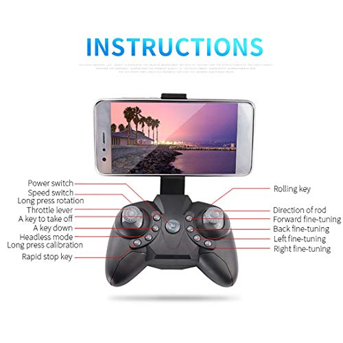 2.4 G; Four channels; Six-axis gyroscope; High, medium and low speeds are designed for upward and downward/forward/backward/left-right turn/left-right fly/fine-tuning. Turn 360 degrees in front, right, left, right, left, and right. Headless mode; One key to turn back;