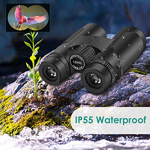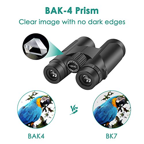 12×42 Fernglas für Erwachsene, kompaktes Fernglas mit klarem schwachem Licht – HD FMC BAK4 Linsenprisma leichtes Jagdfernglas für Vogelbeobachtung, Reisen, Camping, Wandern, Sportveranstaltungen, Konzerte