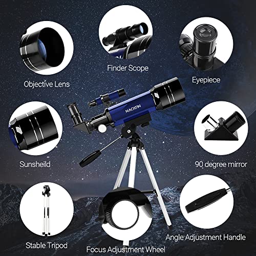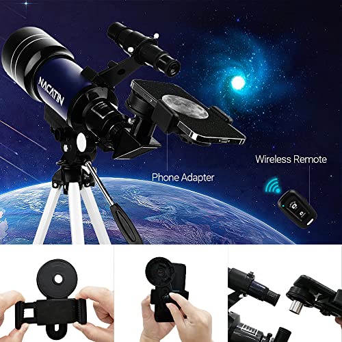 NACATIN Teleskop Kinder Einsteiger 70MM (15X-150X) Teleskop Astronomie mit Smartphone und drahtlose Fernbedienung