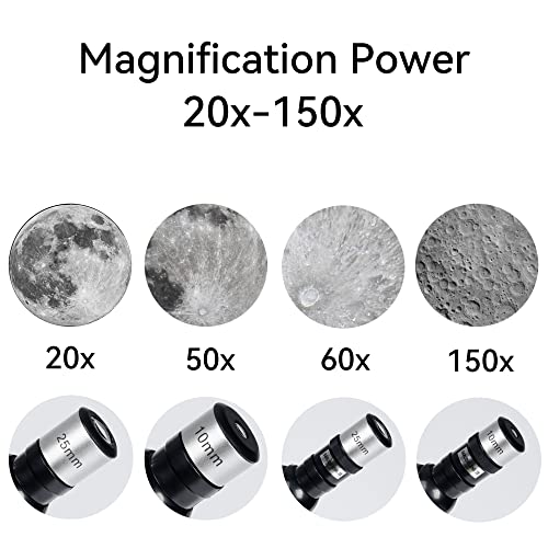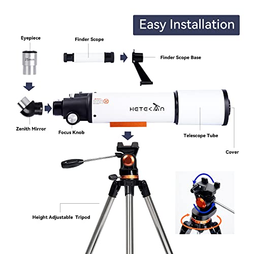 [Hohe Vergrößerung]: Hetekan Teleskop für Kinder und Erwachsene Anfänger hat zwei austauschbare Okulare (25mm,10mm) und eine 3x niedrige Vergrößerung Linse. Das Hinzufügen der mitgelieferten niedrigen Vergrößerungslinse zum Teleskop erhöht die ursprüngliche Vergrößerung um 3x auf eine maximale Vergrößerung von 150x.