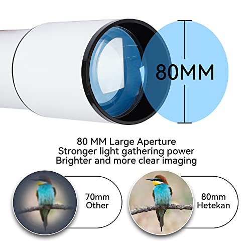 [Große 80-mm-Blende]: Dieses teleskop astronomie verfügt über eine große 80-mm-Blende, die die Bilder heller und klarer macht. Je größer die Öffnung ist, desto größer wird das Sichtfeld sein, so dass Sie klarere Bilder sehen können. Hetekan Teleskope für Erwachsene & Kinder können die Planeten und den Mond betrachten.