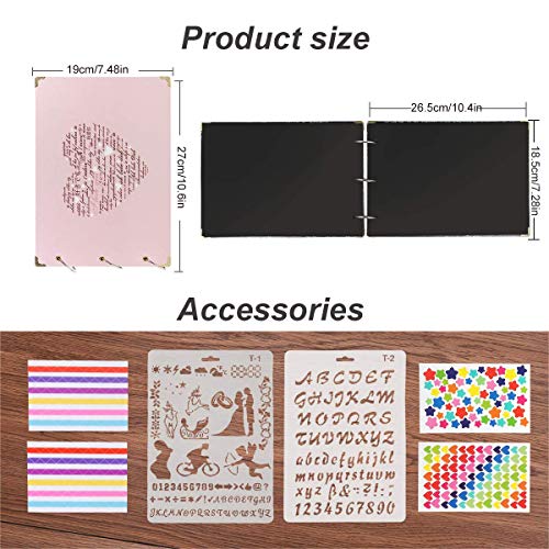 GRÖSSE UND KAPAZITÄT: Scrapbook Größe 27x19CM. Es hat 30 schwarze Blätter Papier/60 Seiten. Die schwarze Seiten Größe 26,5×18,5CM(zwischen A5 und A4), Perfekt für mehr als 100 Stück 6×4 oder 7×5 Zoll Fotos halten und Raum verlassen auf dem schwarzen Papier zum Schreiben.