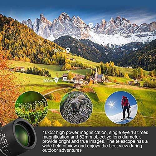 Echte Überführung: 16×52 Hochleistungsvergrößerung, Einzelauge 16-fache Überführung und 52 mm Objektivdurchmesser Acht geben helle und echte Bilder. Das Dual-Fokus-Teleskop hat ein breites Sichtfeld und genießt die beste Sicht bei Outdoor-Abenteuern so angeschaltet wie vor dir.