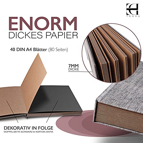 📒 EXTREM DICKES PAPIER – Mit besonders dicken Seiten bietet dir unser Fotobuch zum Selbstgestalten eine lange Haltbarkeit. Das 7mm dicke Kraftpapier im DIN A4 Format kann ohne durchzudrücken mit Filz-, Gel- oder Buntstiften gestaltet werden!