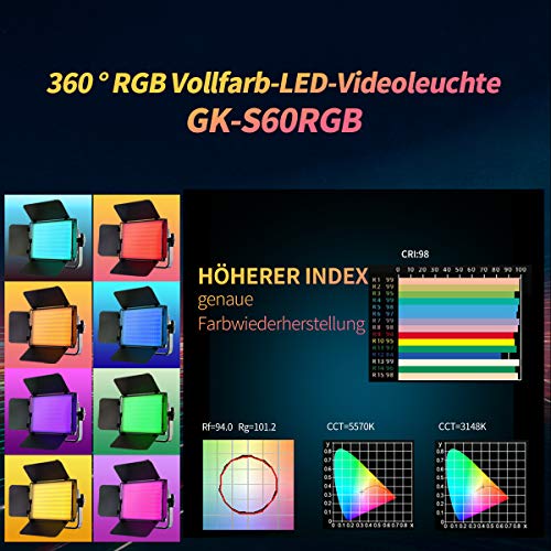 RGB & BI-COLOR LED VIDEOLIGHT – Ausgestattet mit der 600 LED Bi-Color-Aufnahme kann, die erweiterte RGB-Aufnahme mit 81 RGB LEDs ermöglicht Ihnen die Aufhebung des Farbtonausgangs von 0º bis 360º, Effektive Erstellung von LED-Videoleuchten mit vielfältigen Farbausgängen. Dieses RGB-Videolichtfeld verfügt über eine drahtlose 2,4-G-Fernbedienung (maximale Abfuhr: ≥ 50 m). Nicht mehr da Parameter können auf dem LCD-Display auf der Abseite der Leuchte abgelesen werden.