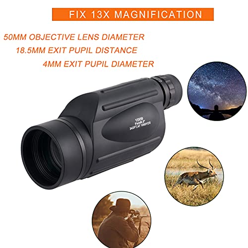 Hochauflösendes Monokular: Das 13×50-Monokular-Teleskop mit fester 13-facher Transformation und großem Objektiv bietet Ihnen die beste Sicht auf Ihre Outdoor-Ereignis, Sportarten und Konzerte mit einem im Überfluss klareren und helleren Bildnis. Dieses Monokular hat ein großes Sichtfeld (342 Fuß / 1.000 Meter) und bietet einen seitlichen Beobachtungsdurchmesser von 342 Fuß, wenn der Längsblickabstand 1000 Meter erreicht.