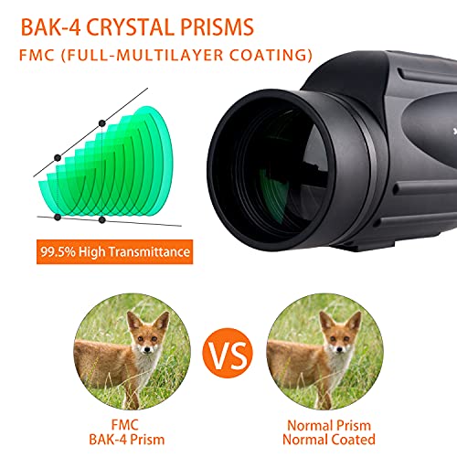 Hochdurchlässiges BAK4-Prisma: Bak-4-Prismen mit rein optischem mehrschichtigem Breitband-Grünfilm, alkoholisiert mehrfach beschichtetem Optikobjektiv garantieren überlegene Lichtdurchlässigkeit und Helligkeit. Die Lichtdurchlässigkeit erreicht bis zu 99,8%. Selbst beim Anschauen wird Ihnen nicht schwindelig Für eine lange Zeit.