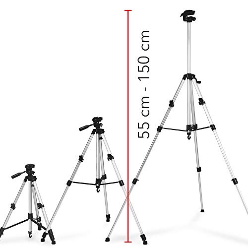 Mit dem Panorama-Kugelkopf wird das Universalstativ mit seinem großen Funktionsumfang zu Ihrer Allzweckwaffe, wenn es um ruhige Kamerahaltung oder kleinlich Messungen geht. Durch Exzerpt der Teleskopstangen einsacken Sie eine bequeme Arbeitshöhe von bis zu 150 cm. Bei Bedarf ist die Schnellkupplungsplatte mit einem Knauf gelöst, wenn die Situation es erfordert.