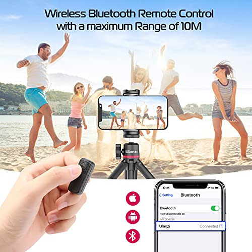 Kabellose Bluetooth-Verbindung: Das Selfie Stativ wird mit einer Bluetooth-Fernbedienung geliefert, die durch 2 Sekunden langes Drücken und Verbindung mit dem Bluetooth „Ulanzi“ eingeschaltet werden kann, um sie zu benutzen. Mit einem Knopfdruck auf die Fernbedienung können Sie schnell Aufnahmen machen, die Reichweite der kabellosen Verbindung beträgt bis zu 10 Meter. Die eingebettete Bluetooth-Fernbedienung ist so konzipiert, dass ein Verlust der Bluetooth-Fernbedienung verhindert wird