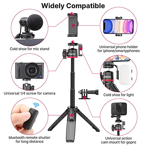 Breite Kompatibilität: Das Handy-Kamerastativ ist mit einer 1/4-Universalschraube ausgestattet, die mit einer kleinen Spiegelreflexkamera abhängig werden kann. Gleichzeitig ist das Stativ mit einer Handyhalterung ausgestattet, die Breite kann frei eingestellt werden, brauchbar für die meisten Smartphones