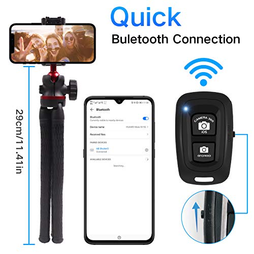 【Drahtlose Fernbedienung】Krake-Stativ mit einer Bluetooth-Fernbedienung, 10 Metern drahtloser Leerzeichen. Sie können ein Remote-Selfie mit im Kontrast dazu einer Taste absorbieren, befriedige alle deine Winkel.