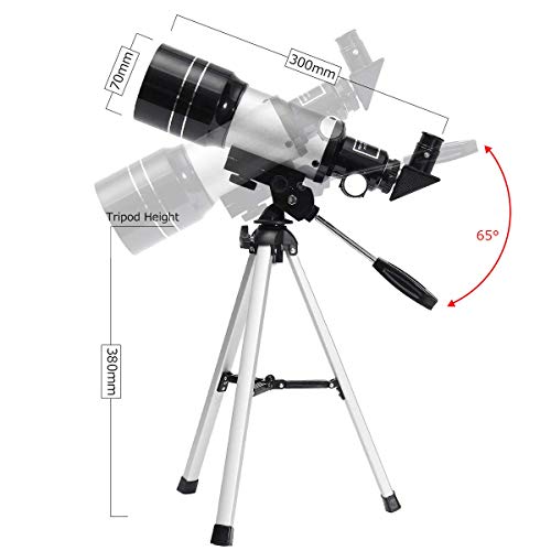 1.【Lernspielzeug】- Astronomisches Weltraumteleskop mit 300 mm Brennweite und 70 mm Objektivdurchmesser, maximal 150-facher Ausbelichtung, bietet helle Bildqualität und hohe Vergrößerungsleistung. Perfektes Teleskop für Kinder und Astronomie-Anfänger, um den Sternenhimmel zu erkunden.