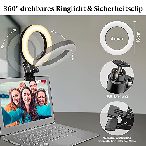 【360°Drehbar & Aluminiumschale】Die Videokonferenz Beleuchtungsset Hat Aluminiumschale,Stärker,Mehr Wärmeableitung,Wird Auch Nach Längerem Gebrauch Nicht Heiß,Der Ringrahmen Kann um 360° Gedreht Werden, Sodass Sie die Winkeln Nach Ihrem Bedürfniss Einstellen und Die Beste Perspektive Bekommen.🌱🌱Auf Dem Clip Befindet Sich Ein Dicker Schwamm (Upgrade-Anpassung). Machen Sie Sich also Keine Sorgen, dass Sie Ihren Laptop Oder Irgendwo Anders Kratzen.