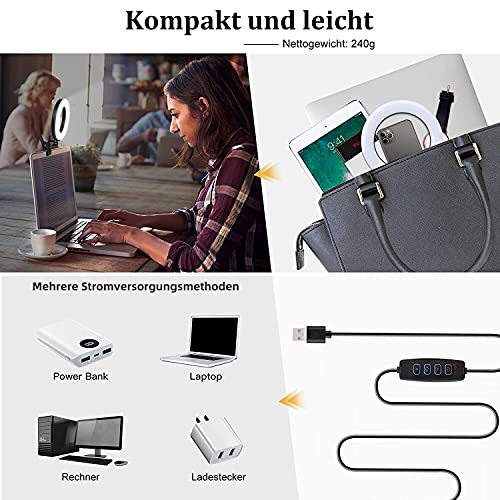 【USB-Basierte und Weit Verbreitete Anwendung】Dieses Selfie-Licht Wird mit USB Betrieben und Funktioniert mit Den Meisten Geräten Wie Laptop, Power Bank, Computer und USB-Ladegerät. Ring Lampen ist Perfekt für Live-Streaming Auf Youtube, Tiktok, Homeoffice, Videoaufnahmen, Vlog einsaugen, Videotelefonie, Online-Unterricht / Business. Es Bietet Auch Lichter für Makroaufnahmen / Make-up / Selfie-Darstellung / Filmen und etc.