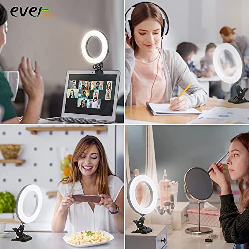 Upgrade Ringlicht Laptop 5“ Videokonferenz Licht,Evershop LED Ringleuchte mit Clip&Stativ 3 Lichtfarben+10 Helligkeiten…