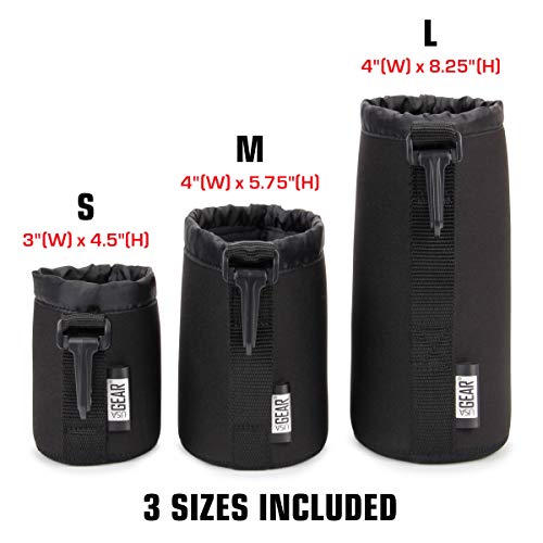 USA Gear FlexARMOR DuraNeopren-Objektivkoffer Premium-Bauweise. Täglicher Gebrauch Egal, ob Sie durch die Straßen der Stadt gehen oder an einem Fotoshooting sich abrackern – diese DuraNeopren-Objektivtaschen sind der ultimative Begleiter. Diese leichtgewichtigen Taschen passen sich an Ihre DLSR-Objektive an und bieten umfassenden Abschirmung, ohne Ihnen in die Quere zu kommen. Seien Sie versichert, dass Ihr Objektiv vor Kratzern, Staub, Feuchtigkeit und Stößen geschützt ist. Komfort Erweitert Mit einem haltbaren Kordelzug können Sie das Gehäuse mühelos öffnen und konkludieren, sodass Sie immer das richtige Objektiv zur Hand haben. Ein verstärkter Clip wird an Gürtelschlaufen, Rucksäcken und vielem mehr befestigt. Mit einer verstärkten Gürtelschlaufe können Sie das Etui beim Abdrücken an der Hüfte abstützen. Maße: – S: 7,62 x 11,43 cm (W x H) – M: 10,16 x 14,6 cm (W x H) – L: 10,16 x 21 cm (W x H) Kompatible Objektive: S: Canon EF 50mm f/1.8 II , Canon EF 40mm f/2.8 STM , Canon EF-S 24mm F/2.8 STM , Nikon AF-S DX Nikkor 35mm F1.8G M: Nikon 70-300mm f/4-5.6G , Canon EF-S 18-135mm F/3.5-5.6 IS STM , Canon EF 85mm f/1.8 USM , Tamron 18-200mm F3.5-6.3 Di VC L: Nikon AF-P DX Nikkor 70-300mm f/4.5-6.3G , Tamron AF 70-300mm F/4-5.6 Di LD Macro , Canon EF 24-70mm f/2.8L II USM … und vielerlei andere Objektive von Pentax, Olympus, Sony, Fujifilm, Leica, Sigma und mehr! * Einige Objektive passen nicht. Bitte überprüfen Sie Ihre Objektivabmessungen.