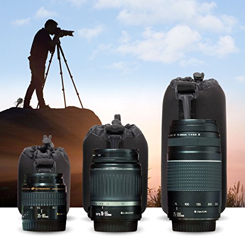 STRAPAZIERFÄHIGES NEOPREN ÄUßERES bietet hervorragenden Abschirmung für Ihre Linsen. Halten Sie sie frei von Staub, Feuchtigkeit, Stößen und Kratzern