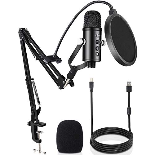 [USB Plug and Play, hohe Kompatibilität]: Dieses Kondensator mikrofon PC muss keine Treiber installieren, einfach an PC MAC Laptop Windows und Linux anschließen.USB Mikrofone eignen sich sehr gut zum Chatten, Aufnehmen, Podcasting und Gesangsaufnahme, Podcasting, Streaming, Meetings, Gesang, YouTube Videos, Gaming, Interviews usw.