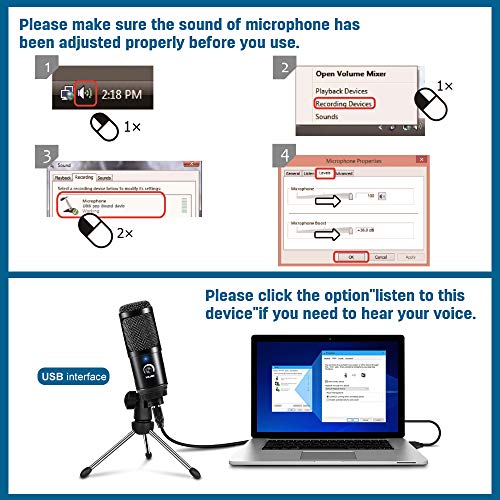 【Plug & Play】Das professionelle Abguss Mikrofon für Computer ist recht einfach zu bedienen. es ist keine andere Software erforderlich,Herleiten Sie das Mikrofon einfach an den USB Anschluss Ihres Computers an.