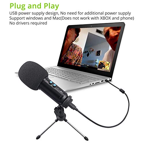 【Plug and Play 】USB Aufnahmemikrofon mit einem 4,2 Fuß USB Kabel für Computer oder PC Laptops, das direkt an den USB-Anschluss angeschlossen werden kann, um Musik, Computersingen oder K-Song-Software aufzunehmen. Einfach zu bedienen und auf Mac oder PC zu installieren. (Nicht kompatibel mit Xbox und Telefon)