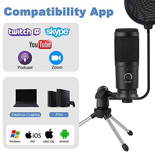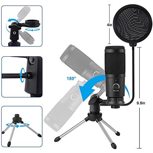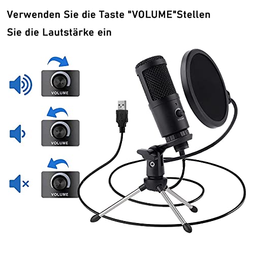 USB Mikrofon PC Kondensator standmikrofon, Computer Mikrofon für Gaming, Podcast, YouTube