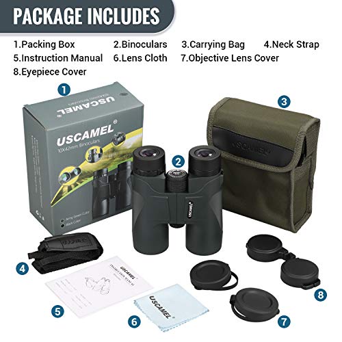 Produktzubehör: Farbenkasten der Verpackung, 10X42Fernrohr, Stoffsack, Handbuch, Brillenputztuch, Zertifikat, Schulterriemen, Wäschetrockner