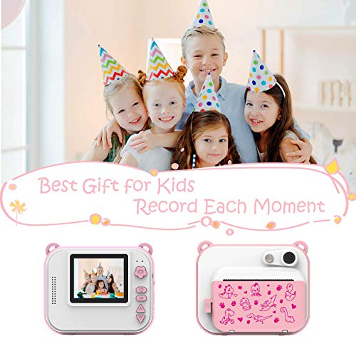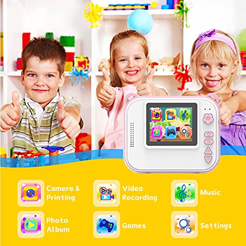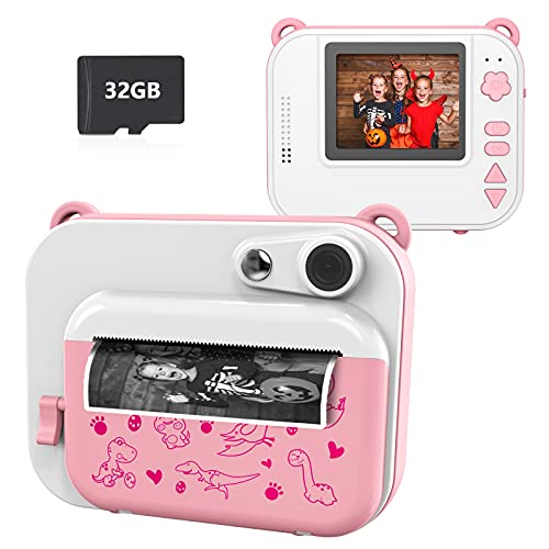 Ushining Kinderkamera, DigitalKamera für Kinder, 1080P HD Videokamera mit 2,4 Zoll IPS Bildschirm, Sofortbildkamera mit 32 GB Micro SD-Karte und 3 Rollen Druckpapier, Geschenk für Kinder (Rosa)