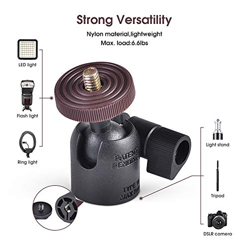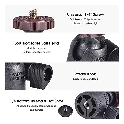 【360 Nuance drehbarer 】 360 ° drehbarer Mini Kugelkopf kann in vertikale oder horizontale Richtung gedreht werden, um eine Winkeleinstellung in mehrere Richtungen zu einsacken, die zugunsten Mehrwinkelaufnahmen patent ist. und die Standardschnittstelle Durch 1/4 Gewinde ist zugunsten verschiedene fotografische Geräte Qualifiziert.