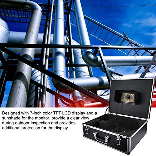 The Inspection Borescope Camera combines a camera probe with a 7-un…TFT-Display monitor to view hard-to-reach inspection areas. The luxury faux leather sunshade provides a clear view during outdoor inspection and provides additional protection for the display. It comes with a fully filled shell that stores all the kits for easy transportation and use. It does not need to tear through the drywall to locate leakage position and helps to solve the pipe problem. A must have tool for any homeowner, contractor or even professional plumber!