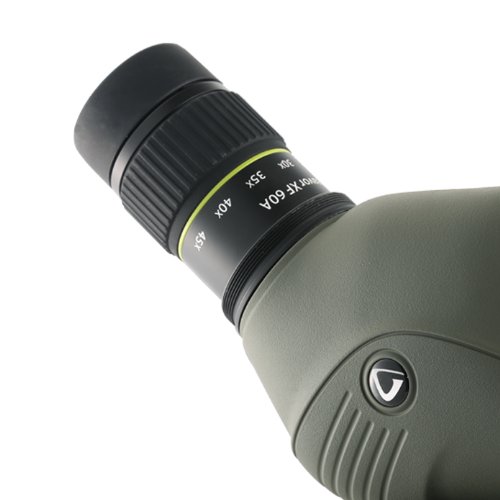 Das Endeavor XF Spektiv überträgt ein hervorragendes Guss für Naturliebhaber und Jagdflugzeug. Das grün-schwarze Magnesium Gehäuse mit Gummiarmierung ist 100% wasserdicht, beschlagfrei und Stickstoff gefüllt. Die Linsen sind alle komplett und mehrfach beschichtet, um eine optimale Lichtdurchlässigkeit zu gewährleisten und verfügt über BaK4 phase-coated Dachkant Prismen. Das Endeavor XF 60A kommt mit einer 60 mm breiten Linse und einem abgewinkelten Okular mit der Möglichkeit einer 15-fachen bis 45-fachen Ausbelichtung. Es verfügt über eine ausziehbare und gummierte Augenmuschel und besticht durch seinen Augenabstand auch bei höchsten Zoom-Einstellungen. Es bietet auch eine sehr beeindruckendes Sichtfeld. Eine eingebaute Sonnenblende verhindert das Blenden bei direkter Sonneneinstrahlung. Die im Lieferumfang enthaltene gepolsterte Umschlag (farblich ebenfalls in grün-schwarz gehalten) ist als Regenschutz und als Transporttasche zu verwenden. Mit einer ebenfalls beigefügten Schlinge können Sie Ihr Spektiv optimal umhängen und überall hin mitnehmen. Die Endeavor XF Reihe ist mit Fokussierrädern zur schnellen und präzisen Feineinstellungen ausgestattet. Dieses Produkt lässt sich sehr einfach auf Stativköpfe von VANGUARD (und anderen Marken) anbringen, sofern diese mit der universellen Montageplatte (ohne den Einsatz einer Schnellwechselplatte) ausgestattet sind.Das Stativgewinde am abgewinkeltem Teil ist drehbar; Sie sind in der Lage den optimalen Blickwinkel in einer Vielzahl von Situationen, wie z.B. Tontaubenschießen einzustellen. Oder Sie verwenden es in Kombination mit einer Fensterhalterung.