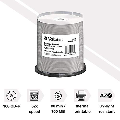 Verbatim CD-R DataLifePlus 700 MB, 100er Pack Spindel, CD Rohlinge beschreibbar, 52-fache Brenngeschwindigkeit und…