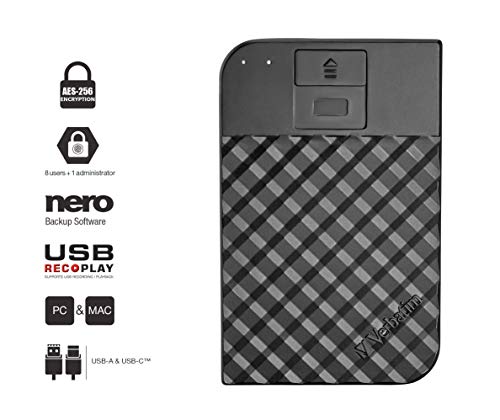 Verbatim Fingerprint Secure. Der Abschirmung Ihrer Daten, letzter Schrei unterwegs, wird heute immer mehr zur Hauptaufgabe – nicht gleichwohl für Unternehmen, sondern bekannt als aus persönlicher Sicht. Die durch Fingerabdruck gesicherte Festplatte nutzt eine Kombination aus 256-Bit-AES-Hardwareverschlüsselung und biometrischer Technologie für volle Informationssicherung. Die wichtigsten Produktdaten: Tragbare USB-CTM-Festplatte mit eingebautem Fingerabdruck-Scanner, 100%-ige 256-Bit-AES-Hardwareverschlüsselung, Bis zu 8 autorisierte Benutzer sowie ein Superuser (mit Passwort), Unterstützt USB SuperSpeed (5 GBit/s), Software Nero Backup, Energiespar-Software und An-/Ausschalter. Systemvoraussetzungen: USB 3.1 (bekannt als mit USB 3.0 & 2.0 kompatibel), Windows 10 – 8 – 7, Mac OS 9 oder höher. Technische Daten: Netz: Busbetrieb über USB-Kabel, Schnittstelle: USB 3.1 GEN 1, Gehäusematerial: Plastik und Aluminium, LED-Anzeige: Gesperrt/Entsperrt, Produktgewicht: 1 TB 156 Gramm / 2 TB 182 Gramm, Abmessungen: 126 mm x 81 mm x 16,5 mm (L x B x H), Betriebstemperatur: 5 °C bis 50 °C, Aufbewahrungstemperatur: -40 °C bis 70 °C, Betriebsfeuchtigkeit: 5 °C bis 90 %, nicht kondensierend. Packungsinhalt: Verbatim Fingerprint Secure Festplatte, Nero Backup-Software, USB-C-TM auf USB-A-Kabel (inklusive USB-CTM-Konverter), Schnellstartanleitung, Benutzeranleitung. Die auf der ganzen Welt anerkannten Produkte von Verbatim, zu denen optische Speichermedien, USB-Laufwerke, Speicherkarten, Festplatten, SSDs (Solid State Drives), mobiles Zubehör und Filamente für den 3D-Reproduktion abzählen, werden in über 120 Ländern verkauft. Verbatims Stärken in den Bereichen F&E und die Technologieführerschaft des Unternehmens garantieren im Zusammenspiel mit der anspruchsvollen Qualitätskontrolle erstklassige Produkte und Technologien, denen Sie vertrauen können.