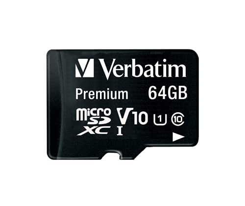 Verbatim Premium Micro SDXC Speicherkarte mit Adapter, 64 GB, Datenspeicher für Foto- und Video-Aufnahmen, Micro SD Karte in schwarz, ideal für Handy, Kamera oder Tablet