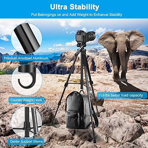 ②Kompakt und tragbar: Die Aufbewahrungshöhe von 54,9 cm kann auf Reisen leicht im Koffer getragen werden. Das Gewicht von 1,3 kg belastet die Reise nicht. Das Flip-Lock-Design ermöglicht es Ihnen, in Sekunden ein 182,9 cm großes Stativ zu erhalten