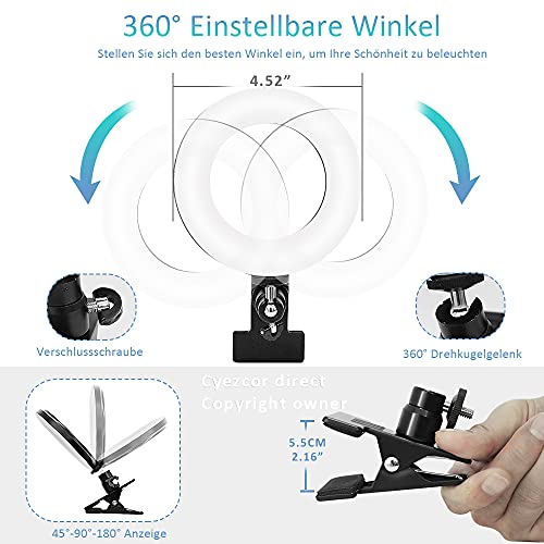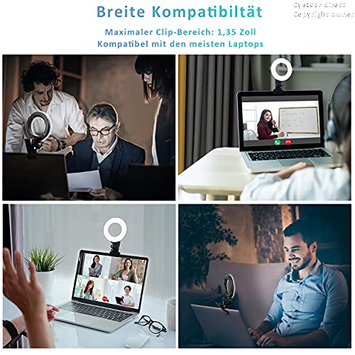 【Kreisförmiges Design, mehrfache Verwendung】: Die Konferenzlampe hat ein Ringdesign, das Licht ist gleichmäßiger als eine feste Lampe, keine Blendung, kein Schatten und das weiche Licht ist nicht blendend. Es ist auch eine Mini-Ringlampe. Es kann weit verbreitet für Fernarbeit, Videokonferenz, Zoomanruf, Selbstübertragung, Live-Übertragung, Make-up, Lesen, YouTube, Tiktok verwendet werden.