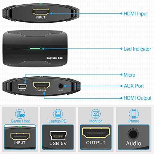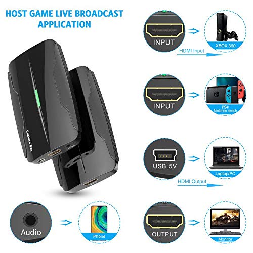 HDMI-Game-Capture-Karte – entsprechend für Geräte mit HDMI-Ausgang, Sowie, für PS4, Xbox, Wii U und Switch, ideal für Videoaufnahmen, Live-Übertragungen und sonstige Funktionen auf dem PC.