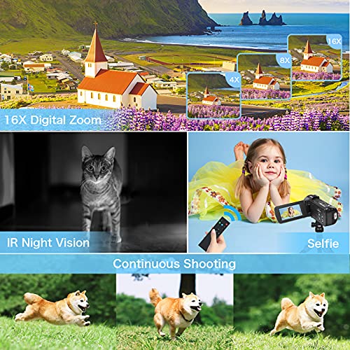 【Full-HD 1080P Videokamera】Unsere 1080P Videokamera kann erstaunliche Fotos und Videos Einsaugen und ihre Videoauflösung beträgt bis zu 1080P und 36 MP Bildpixel. Der 3.0“ Bildschirm kann um 270° gedreht werden, sodass Selfies leicht gemacht werden können Oder nehmen Sie einen Videoblog auf. Und mit dem 16-fachen Digitalzoom können Sie ganz einfach aus der Ferne abfotografieren. Diese Video Kamera ist das perfekte Geschenk für junger Mensch und Anfänger, um Reisen aufzuzeichnen.