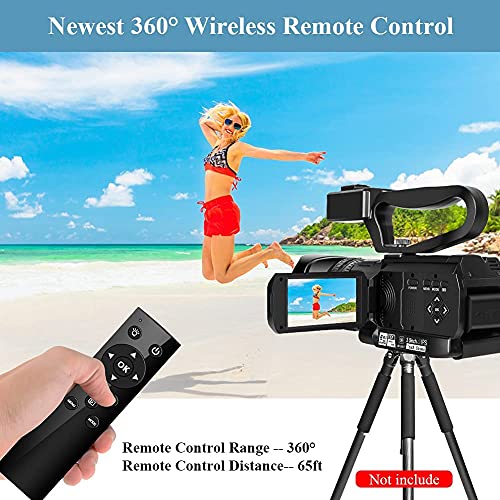 【4K-Camcorder mit 2,4G-Fernbedienung】Video Camcorder mit Mikrofon verwendet XY-Stereo-Pickup-Technologie, die die Tonbildlokalisierung klarer und stabiler macht. Sie verbessert die Lautstärke der Tonaufnahme und reduziert das Rauschen. Die 2,4-G-Fernbedienung des Camcorders ist die erste in der Branche. Der maximale Erfassungsabstand beträgt 60 Fuß bei 360 Grad. Sie können frei Werke nach Ihren Wünschen aufnehmen, ohne durch den Betätigungswinkel der Fernbedienung auf Sparflamme zu werden.