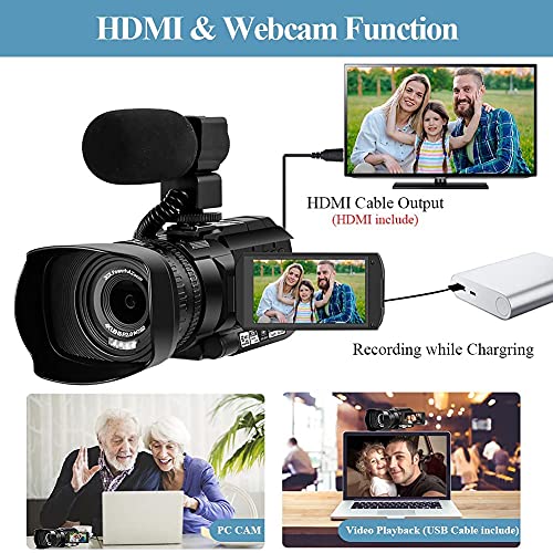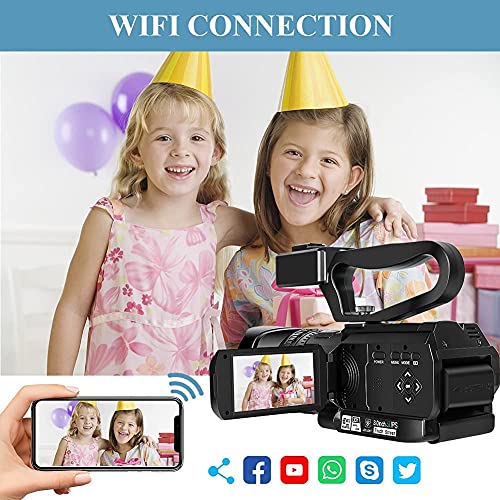【Webcam für lebendiges Video】 Der 4k-Camcorder kann als Webcam verwendet werden. Sie können also die Facebook-, YouTube- oder Ins-Seite öffnen, um den Live-Stream zu starten. Wenn Sie die „XDV PRO“ APP herunterladen, wird Ihr Telefon zu einer Fernbedienung zur Steuerung den 4k-Camcorder und durchsuchen Sie Bilder oder laden Sie Dateien von der Kamera per WLAN auf das Mobiltelefon herunter, um sie zu teilen.