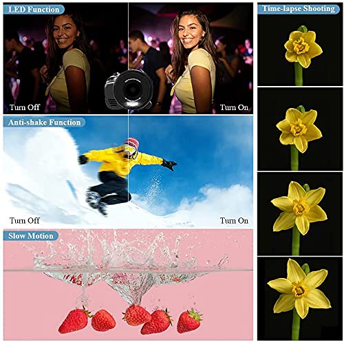 【Anti-Shake-Vlogging-Kamera】 Die HD-Mini Videokamera wird mit einem Handstabilisator geliefert, der die Stabilität während des Aufnahmevorgangs aufrechterhalten kann und die aufgenommenen Videos und Fotos klarer macht. Dies ist ein ideales Geschenk für Freunde. Machen Sie sich bewegende Low-Winkel-Videos und Bilder. Ausgestattet mit einem LED-Blitz hat die Kamera einen besseren Aufnahmeeffekt bei schlechten Lichtverhältnissen. Die Videokamera sind super für Videoblogger