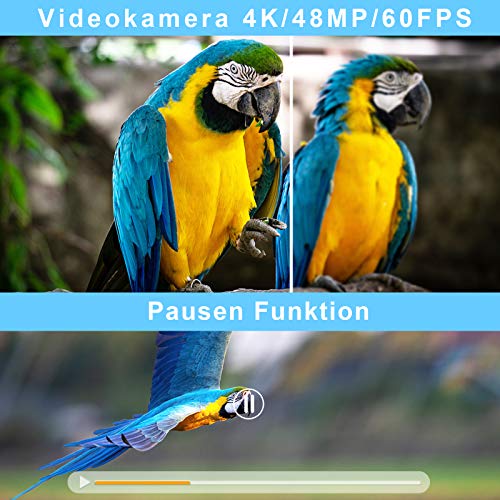【Digitaler 4K Ultra HD-Videokamera】Camcorder verfügt über eine Videoauflösung von 4K / 30fps und eine Bildauflösung von 48 MP und unterstützt den 16-fachen Digitalzoom. Die Kamera verfügt über 3,0-Zoll-Touchscreen mit 270-Grad-Rotationsfunktion und WIFI,IR-Nachtsicht, Webcam und Wifi-Funktion. TV-Ausgabe, Pausenfunktion, Zeitlupe, Bewegungserkennung, Loop-Aufnahme, Serienaufnahme, Gesichtsaufnahme, Schönheitsfunktion, Selbstauslöser, Wiedergabemodi, Verwacklungsschutz.