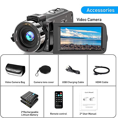 【Videokamera-Camcorder】 Die Videokamera ist Full HD 1080P mit einer Bildauflösung von 36,0 MP, einem IPS-Ultraklar-Bildschirm mit einer Drehung von 270 ° und einer 16-fach Digitalzoom-Kamera. Es hat auch einen 8-Megapixel-CMOS-Bildsensor, mit dem Sie lebendige und äußerst realistische Bilder und Videos einsaugen können.