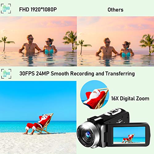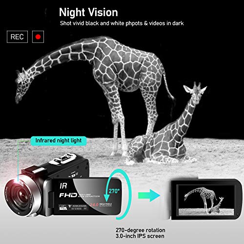 ✿【Full HD 1080P/30FPS Videokamera】 Diese Videokamera verwendet den neu aktualisierten Chip, mit dem Sie unglaubliche 1080P/30fps-Videos und 24MP-Fotos produzieren können. Mit einem 16-fachen Digitalzoom können Sie wertvolle Momente in der Nähe, in der Ferne und dazwischen aufnehmen. Außerdem verfügt der Camcorder über eine 270-Grad-Drehung, einen 3,0-Preis-IPS-Bildschirm und eine Fernbedienung. Alle diese Konfigurationen bieten ein flüssiges Aufnahmeerlebnis und wundervolle Effekte!