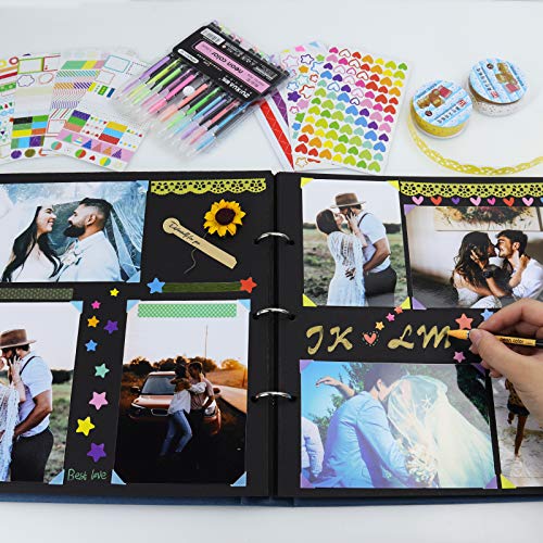 Vienrose Fotoalbum zum Selbstgestalten 30×30 cm, DIY Fotobuch mit 60 Schwarzen Seiten Scrapbook, 10×15 Fotos Spiralalbum Geschenk für Absolvierte Geburtstag Weihnachten Hochzeit Familie Baby
