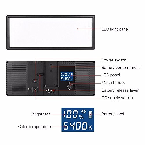 Das VILTROX L132T LED-Licht nimmt das neueste LED-Bienenwabendesign an. Es hat eine hohe Helligkeit, Natur und weiches Licht, stabile Farbtemperatur. 132 Lampenperlen Anhand einer Farbtemperatur von 3300K-5600K. 810Lux, höhere Helligkeit daneben gleichem Energieverbrauch. Das hochauflösende LCD-Display sorgt sondern eine klare Bedienoberfläche. Sie können die Helligkeit und Farbtemperatur stufenlos anpassen, es ist entsprechend sondern Porträt, Kinder, Hochzeit usw. Das robuste Metall-Baseboard des Blitzschuhadapters kann auf DSLR, DV-Camcorder und Stativ montiert werden. Spezifikation: Maximale Beleuchtungsstärke: 1065LM / 835 Lux / 0,5M Farbtemperatur: 3300K ~ 5600K (einstellbar) Helligkeitsbereich: 20% ~ 100% (einstellbar) Leistung: 16,2 W Farbwiedergabeindex: 95 (RA) + Eingangsleistung (alle beide nicht im Lieferumfang enthalten): Li-Batterie NP-F550 / F750 / F960 sereis, DC9V ~ 12V / 1,5A, DC005 Allgemeine Schnittstelle (alle beide nicht im Lieferumfang enthalten) Fortsetzen der Leuchtdauer: Ca. 2 Std. (100% besoffen, NP-F750 / 4400 mAh) Gewicht: Ca. 290g Paket beinhaltet: 1 x L132T LED-Licht 1 x Blitzschuhadapter 1 X Benutzerhandbuch 1x Garantie