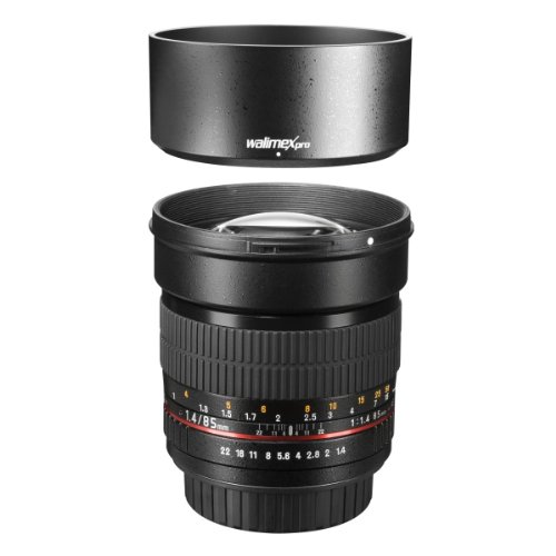 Walimex Pro 85 mm 1:1.4 DSLR-Objektiv (Filterdurchmesser 72 mm, mit abnehmbarer Gegenlichtblende) an Stelle Canon EF Objektivbajonett schwarz