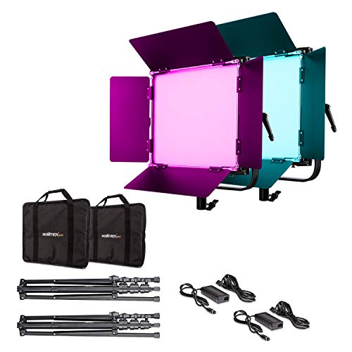 KOMPLETTSET AUS 2x RGB LED LEUCHTEN UND 2x STATIVE -2er LED Beleuchtungsset mit 2x 100W LED Leuchte und passend dazu 2x Walimex pro GN-806 Lampenstativ. Mit diesem Set können Sie sofort starten und alles ist optimal aufeinander geschmackvoll.