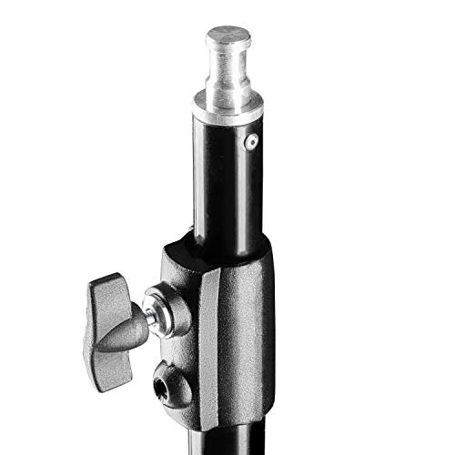 Die Federdämpfung dieses Beleuchtungsstatives sorgt für ein sicheres und bequemes Senken der montierten Ausrüstung.