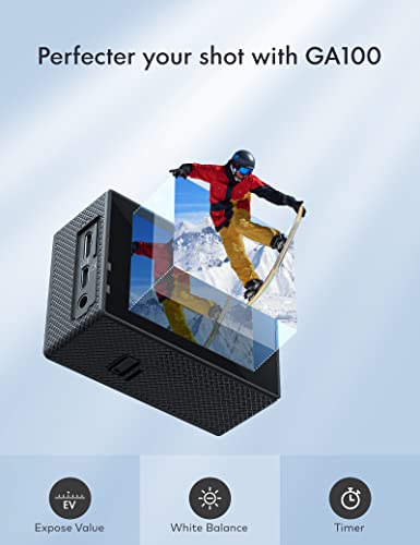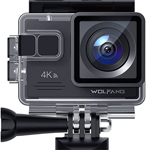 WOLFANG GA100 Action Cam 4K 20MP Unterwasserkamera WiFi 40M wasserdichte EIS Bildstabilisator Helmkamera 170°Weitwinkel Camcorder (Externem Mikrofon, 2.4G Fernbedienung, 2 Akkus und Zubehör Kit)