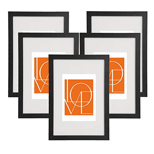 WOLTU 5er Set Bilderrahmen Fotorahmen Holzrahmen 20x30cm, Fotogalerie mit Papier-Passepartout, aus MDF Platte, BR9648sz…